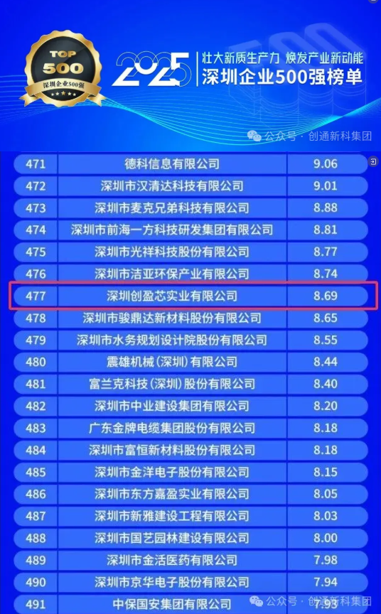 “深圳企业500强榜单”以其科学的评估体系和严格的遴选标准,成为衡量深圳企业综合实力的权威标杆。此次入选,标志着公司的成长潜力与行业贡献获得了高度认可。