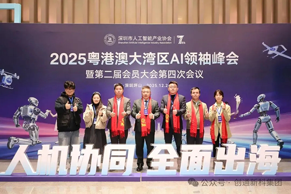 2025年12月26日,以“人机协同·全面出海”为主题的2025粤港澳大湾区AI领袖峰会暨第二届会员大会第四次会议在深圳成功举办。大会汇聚人工智能领域专家学者、企业代表及产业界人士,共同探讨AI前沿趋势与融合路径,为粤港澳大湾区打造全球人工智能创新高地凝聚智慧、链接资源。本次峰会上,创通新科集团当选为深圳市人工智能产业协会智算终端委员会主席单位,集团董事长窦凯出任委员会主席。